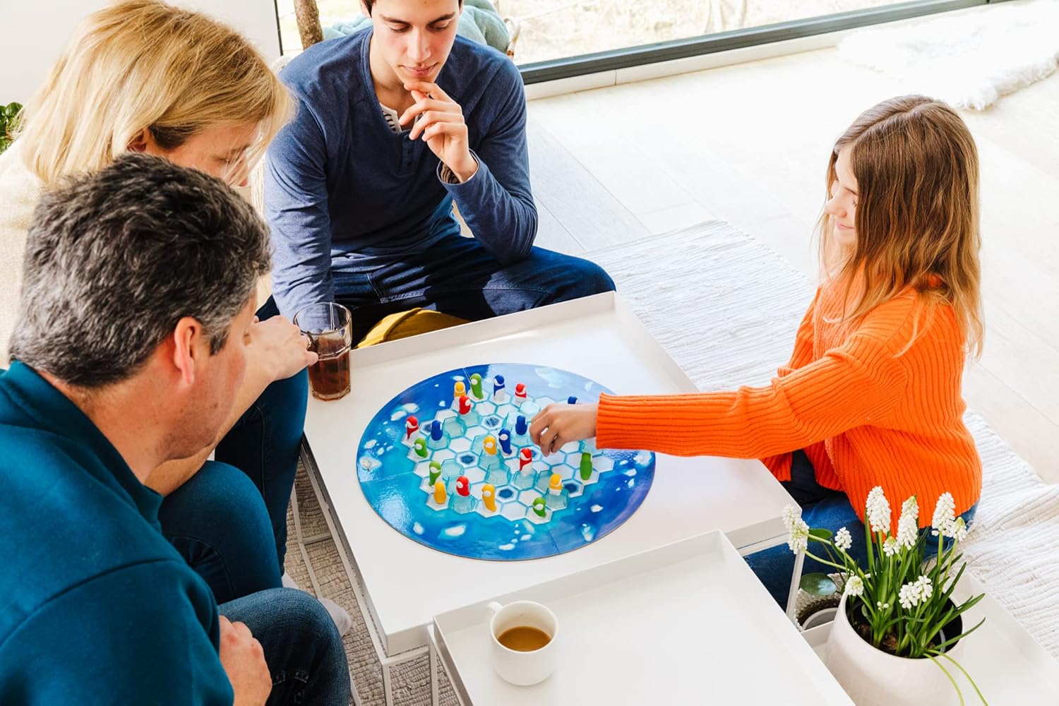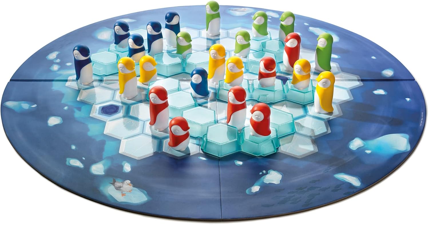 Penguins are scattered across the ice and it’s starting to get cold! Move your penguins together into a huddle… while blocking your opponents from doing the same. The first player to bring their entire penguin family together wins the game.