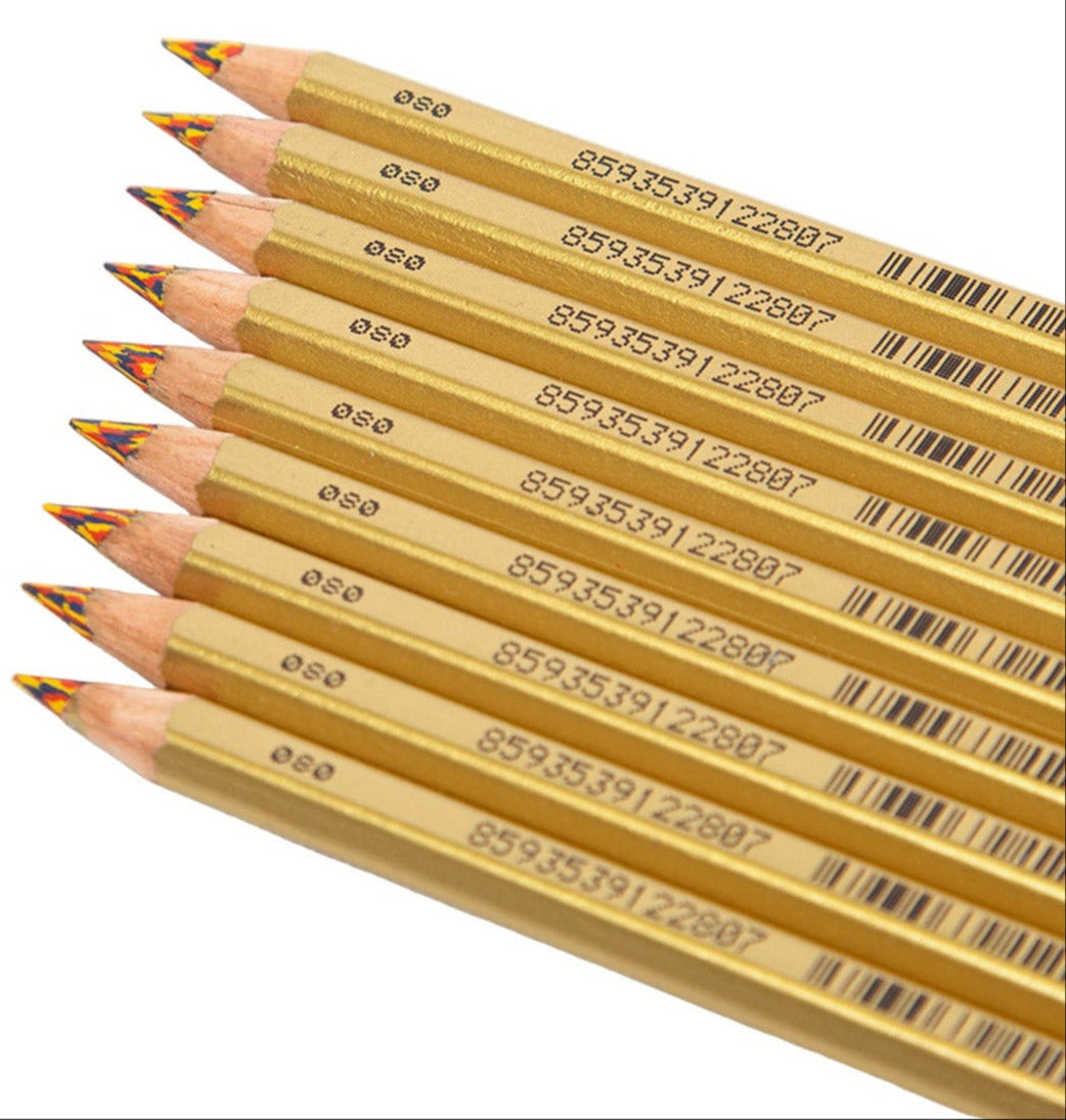 These gold pencils feature 3 colours woven into the core, a Koh-i-Noor speciality.  The colours blend beautifully and smoothly when writing or drawing.