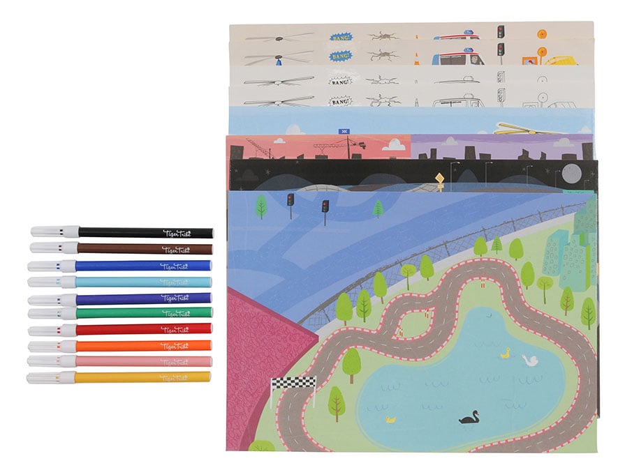 This A4 sized set includes four reusable scene sheets. There are 100 pre-coloured and 100 colour-your-own black & white reusable stickers to decorate your scenes, over and over. Tiger Tribe have also included 10 colour markers for hours of creative, sticker fun!