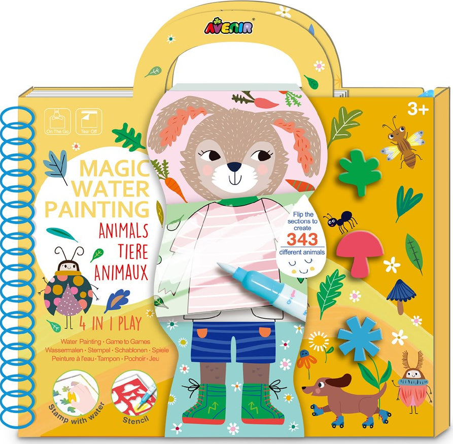 The Magic Water Painting - Forest Animals Book comes with 8 magic water painting pages, a refillable water pen, a reusable stencil and 3 water stamps. There are also some fun games too! Multiple fun activities contained in one book!