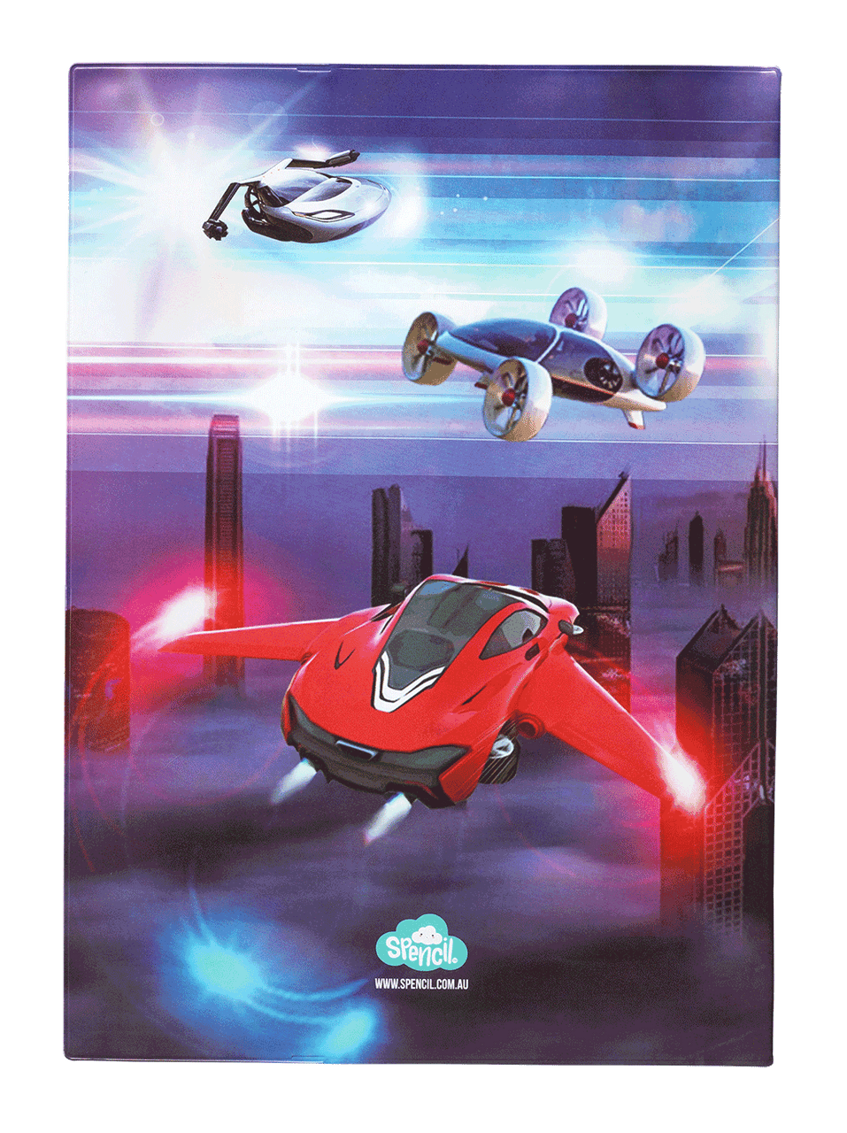 Spencil A4 Bookcover - Flying Cars | Book Cover A4 Exercise Book Size