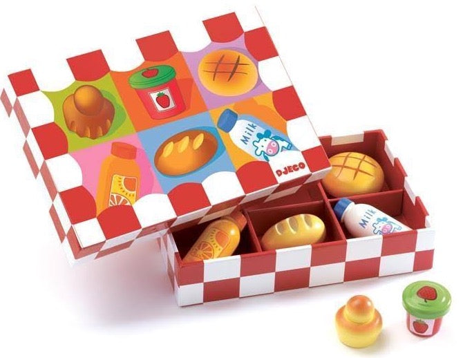 This wooden breakfast set is perfect to serve breakfast to the entire family or simply incorporate this play set into other forms of free play!