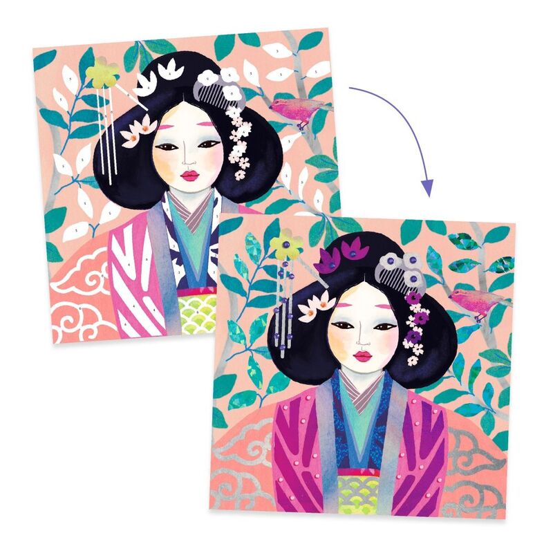 Identify the areas to be foiled using the colour code on the boards, then remove the protective film from the pre-glued surface and apply the foil sheet. The material sticks as if by magic! All that's left is to stick on the rhinestones to make the pictures shine.