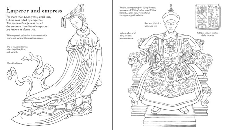 A stylish colouring book for budding artists. It features beautiful black and white line drawings of many traditional Chinese patterns and designs. It includes line drawings that allow the readers to colour them in their own style. Each picture is accompanied by simple but interesting facts.