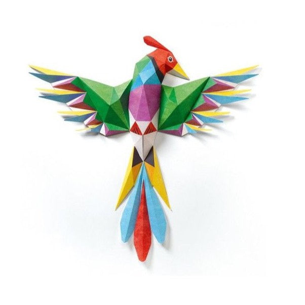 Fold and join together the paper cutouts to create a stunning and bright 3D bird.