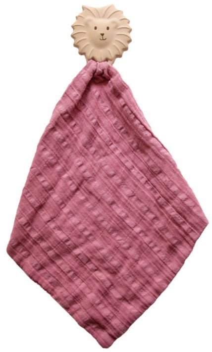 Lion Rubber Teether with a Dusty Pink Muslin Comforter | by Tikiri