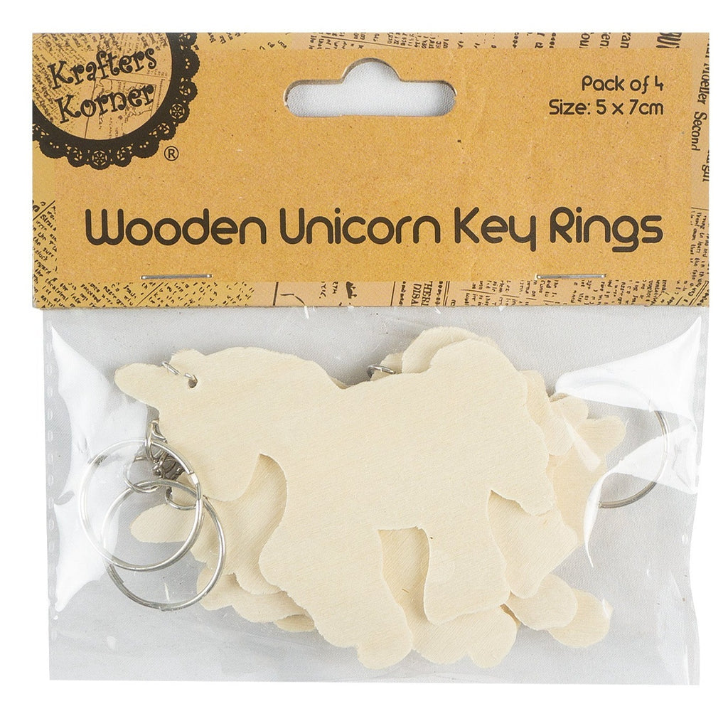 Wooden Unicorn Key Rings - 4 Pieces | Krafters Korner