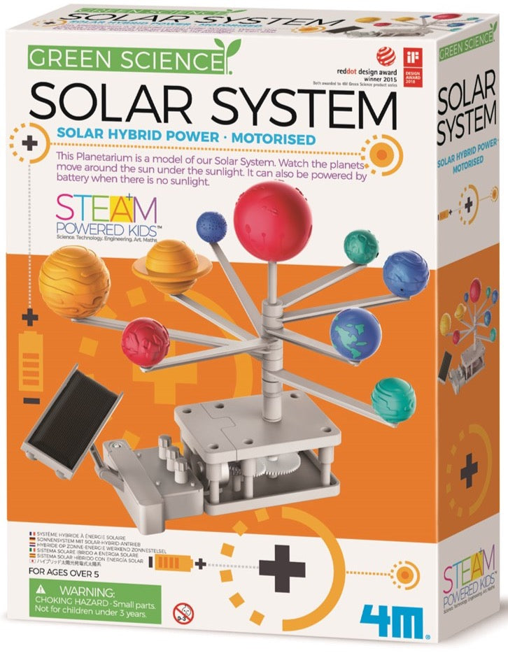 This Planetarium is a model of the Solar System. Build up the motor system and the model and play. Watch the planets move around the sun, powered by solar or battery.