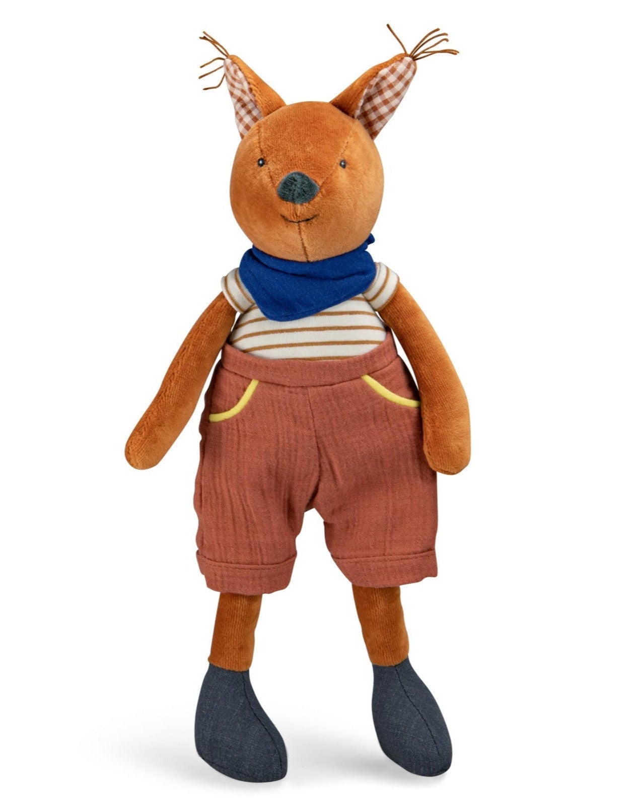 Have you met Harry the squirrel? This friendly little creature is from the Pomme des Bois collection which tells the story of forest friends who trail the small wooded paths, seeking and gathering coloured treasures!  Featuring super soft corduroy body, he is dressed to impress with auburn red shorts, decorative ears and bright blue neck tie. Harry is made from OEKO-TEX certified fabrics, excepting his fur tail.