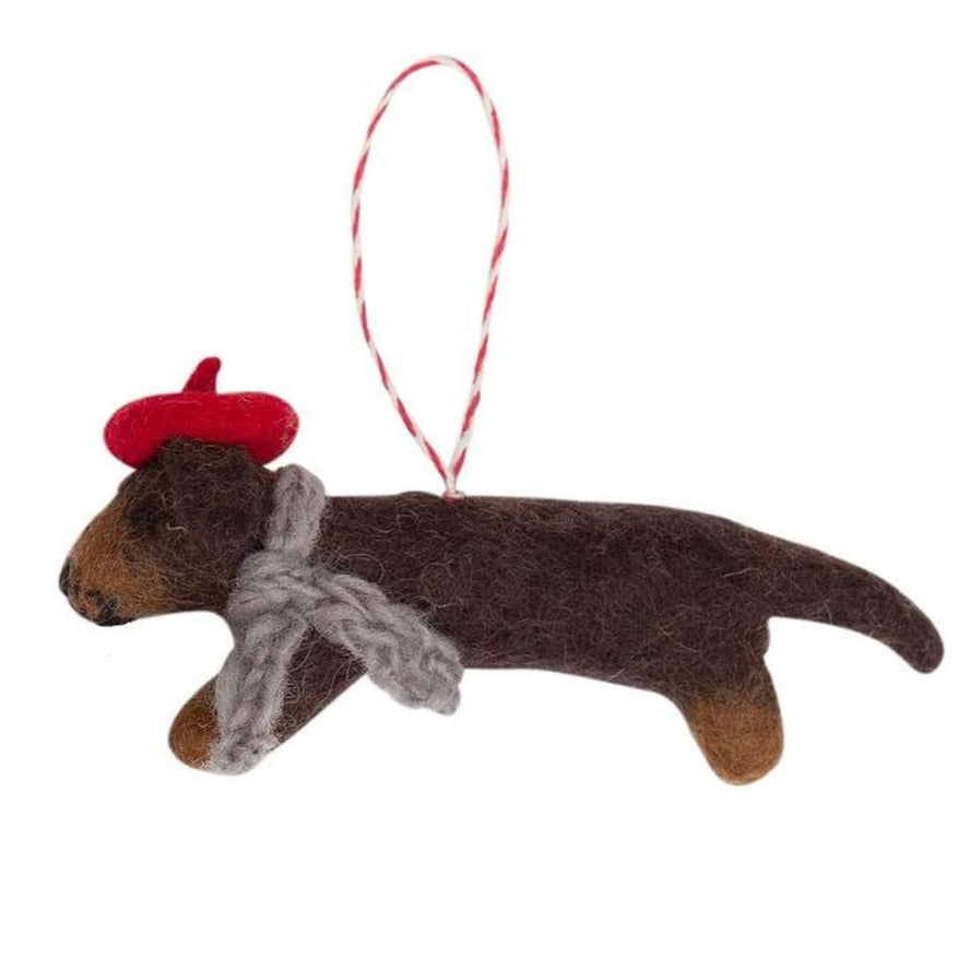 Handmade Dachshund Dog Christmas Decoration | 100% NZ Felted Wool