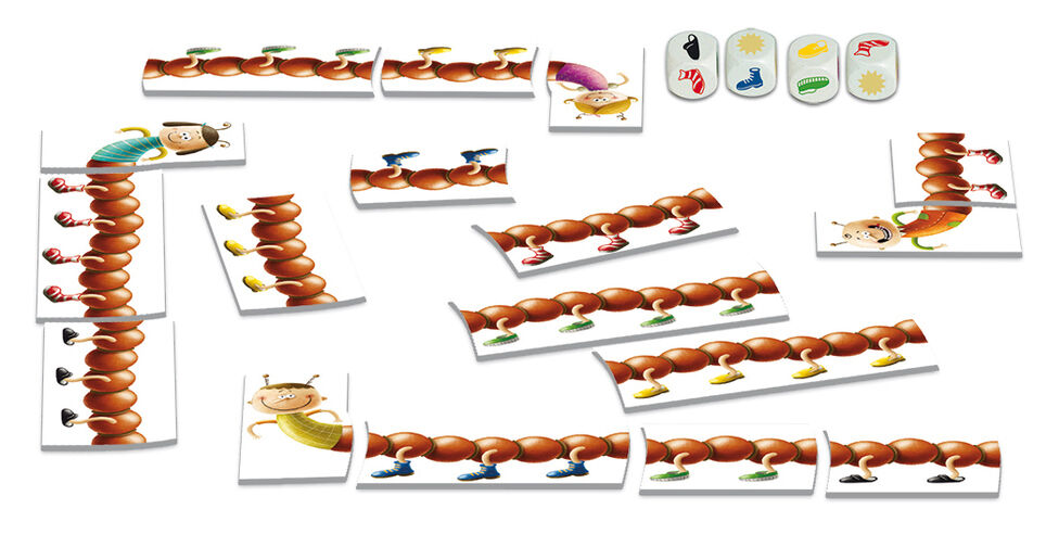 In this lovingly illustrated children's game, the players try to roll as many shoes of the same color as possible for their millipedes.