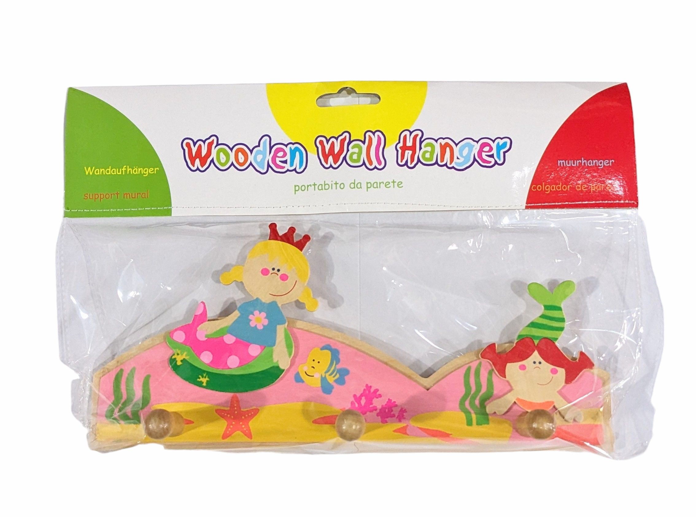 A cute wooden Mermaid Peg board to hang in your bedroom or hallway for storing light jackets and small bags. Each Peg board features an underwater mermaid scene and comes with 3 Peg hooks for hanging. The Peg rack also has a keyhole slot back for easy installation onto walls.