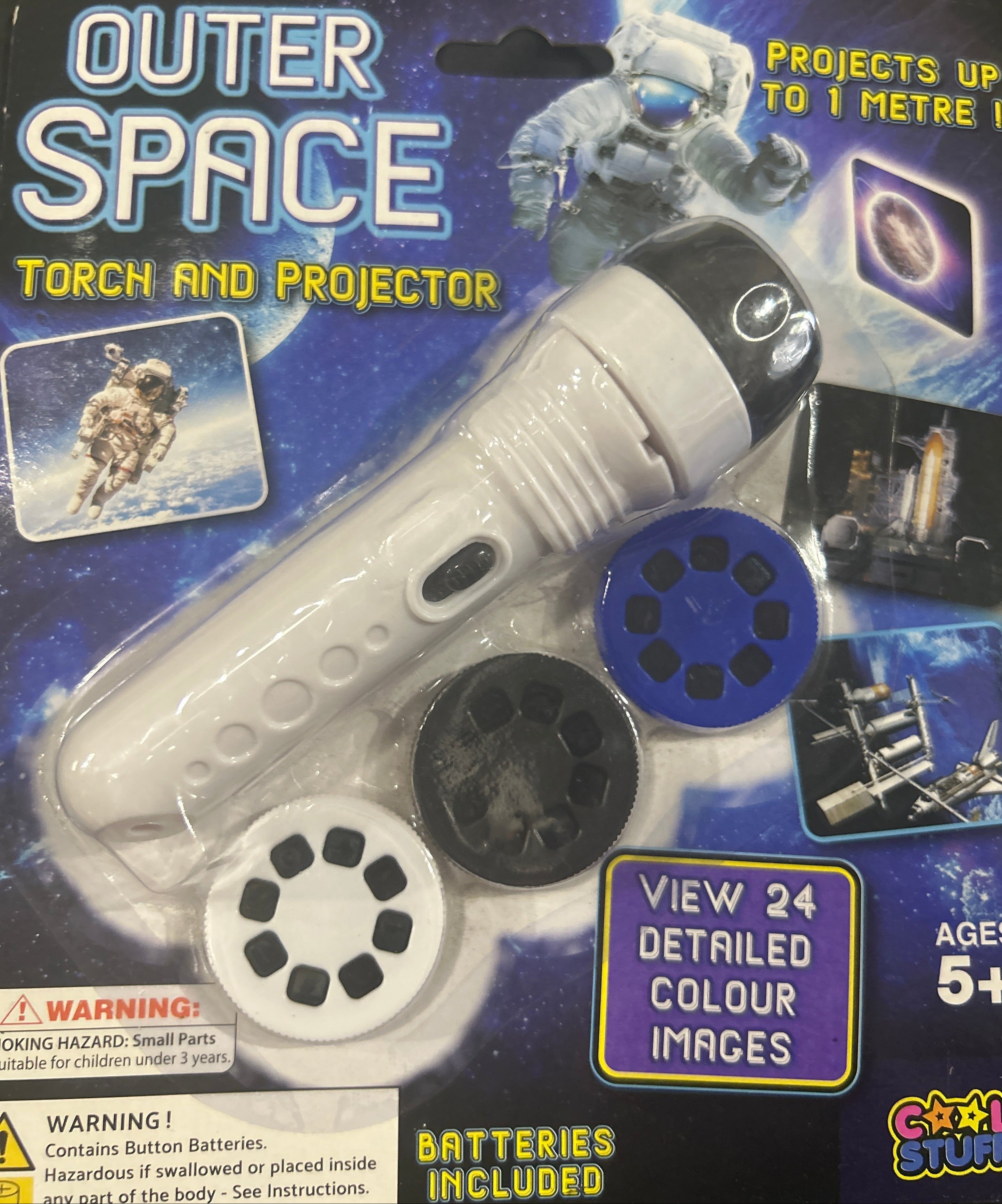 This toy also doubles as a projector, casting cool and colourful images onto any flat surface. With 3 different interchangeable disks included - making 24 detailed colour images, your child can choose from a variety of space themed images to project onto walls, ceilings, and floors.