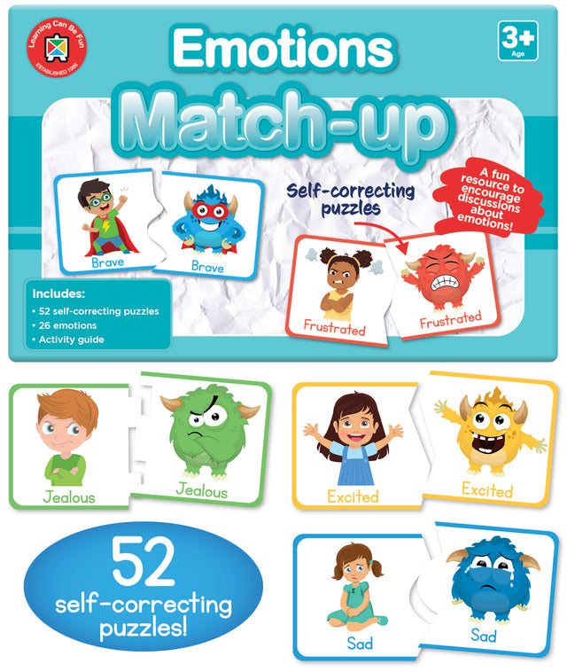 Emotions Match-up is the perfect resource to encourage meaningful conversations and discussions about our emotions in a thoughtful and easy-to-understand way. Becoming familiar with different emotions is important for young children developing their social skills. This set of 52 puzzles, includes 26 different emotions and will help young learners identify the feelings they and other people typically experience, from happy to anxious and sad to excited.