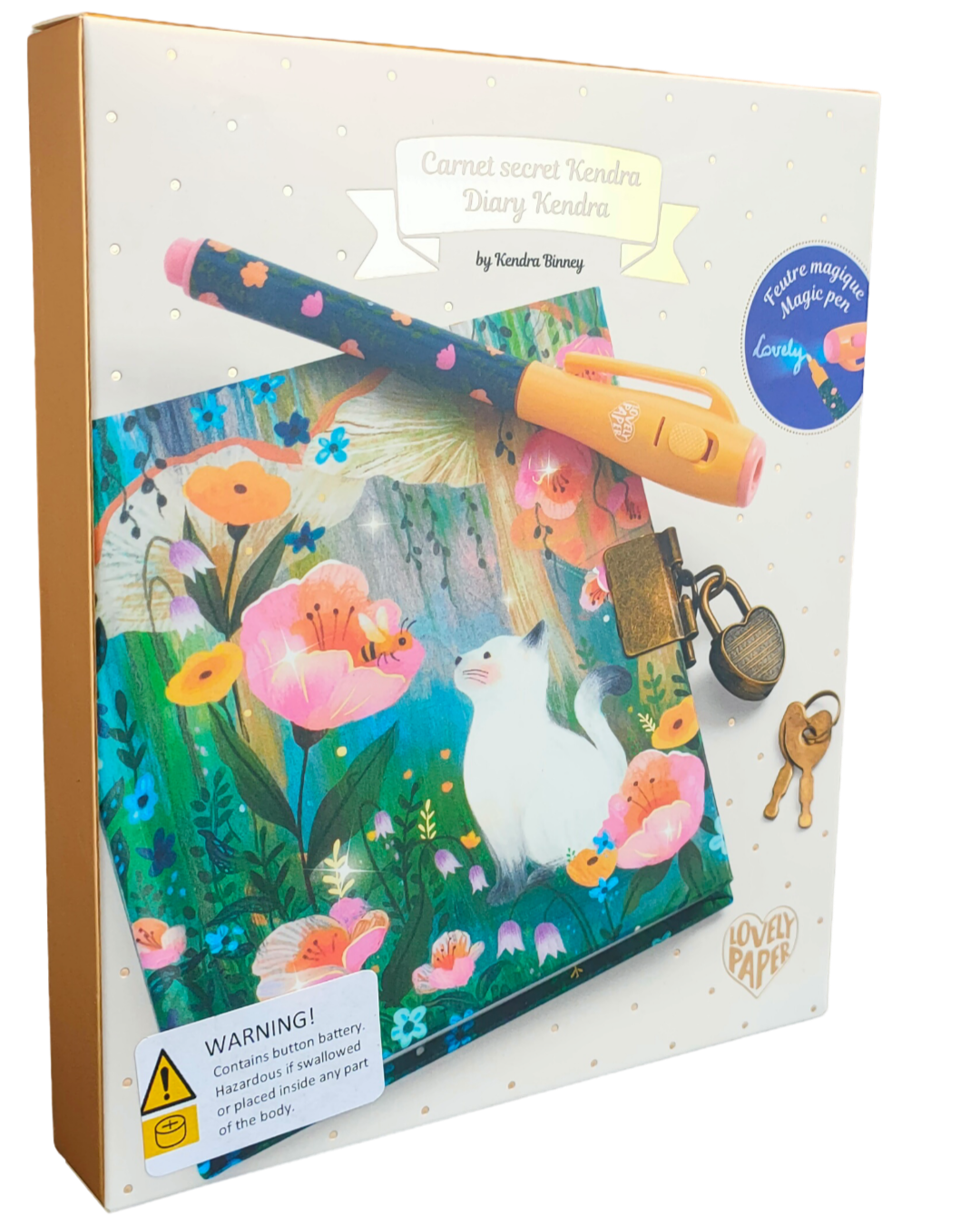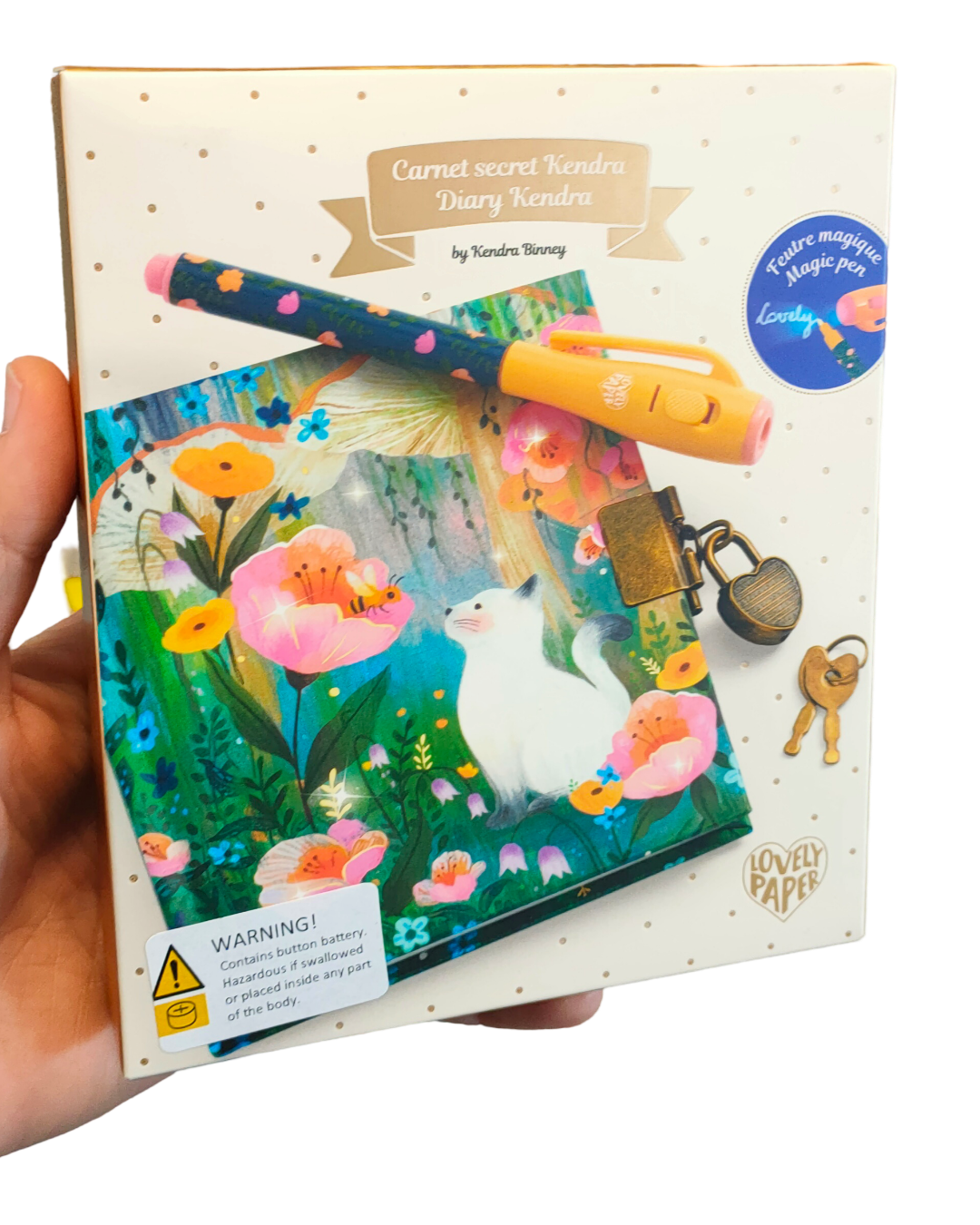 Secure your thoughts with the Kendra Little Secret Notebook, featuring a magic pen with invisible ink, provided by Djeco.
