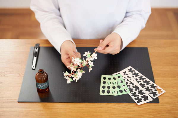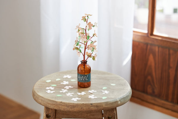 SOEL is a paper craft that adds colour to your lifestyle. Simply cut out the pre-cut flower and leaf parts from the sheet and thread them onto a stick to create a plant-themed piece for your space.