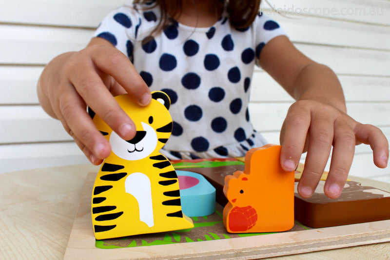 This educational puzzle increases your childs awareness of shape recognition and shape sorting. Board is printed with animal shapes to assist children in matching the animals. Puzzles are a great opportunity to grow your childs gross and fine motor skills, hand and eye coordination, problem solving, shape and colour recognition.