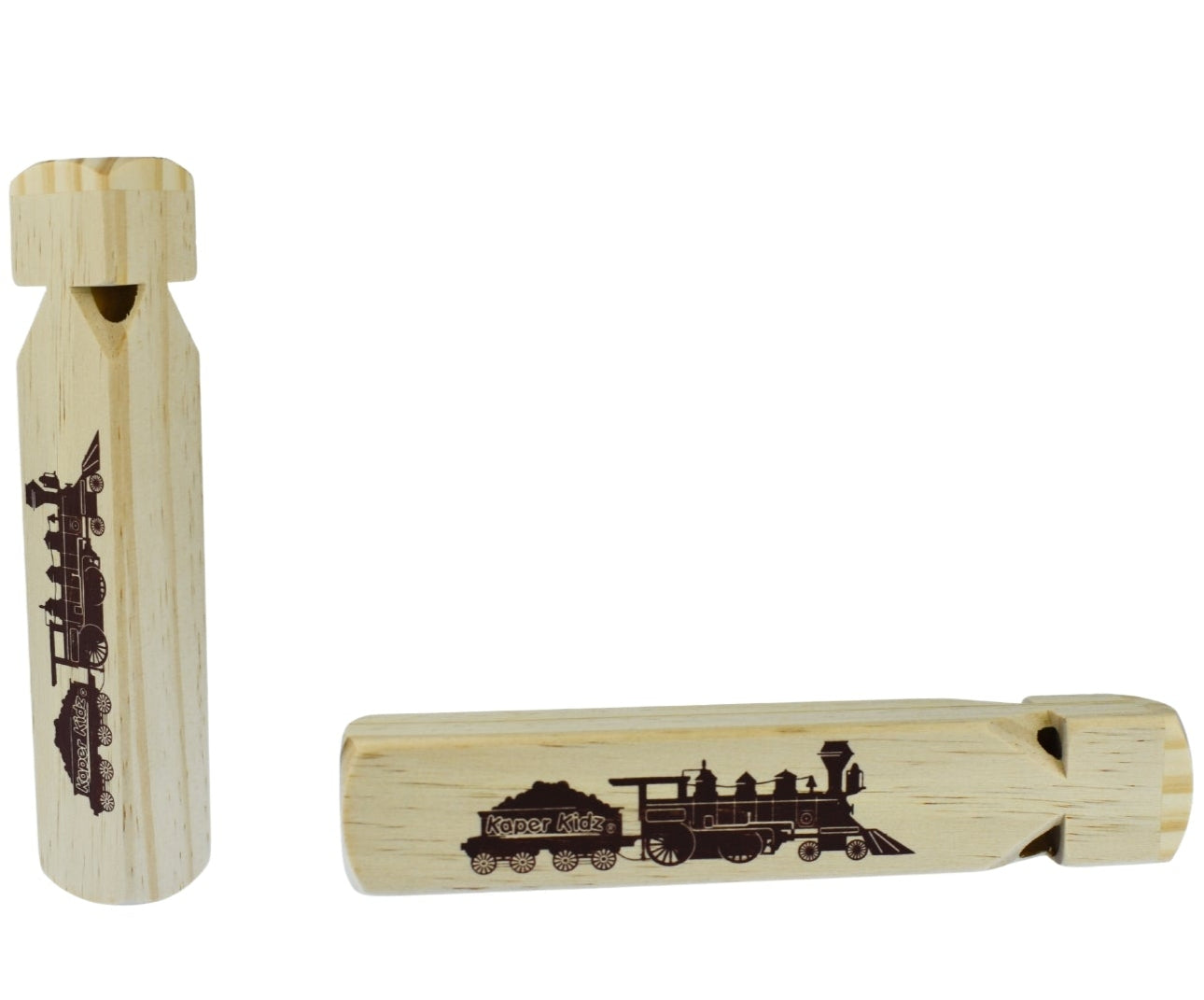 Blow softly into these wooden train whistles by Kaper Kidz, and immerse yourself in the tranquil melodies reminiscent of a train station's whistles.