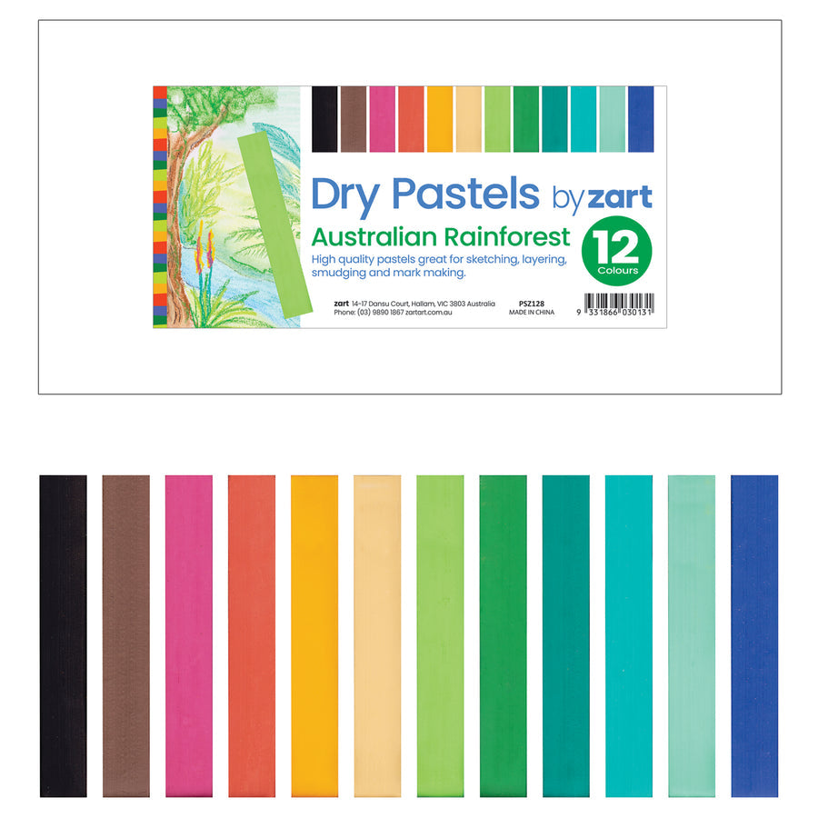 • Dry pastels in a themed set of 12 Australian Rainforest Colours